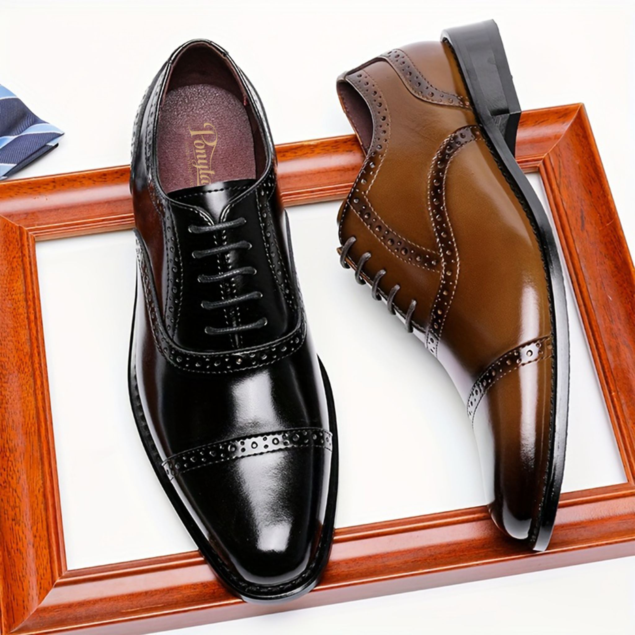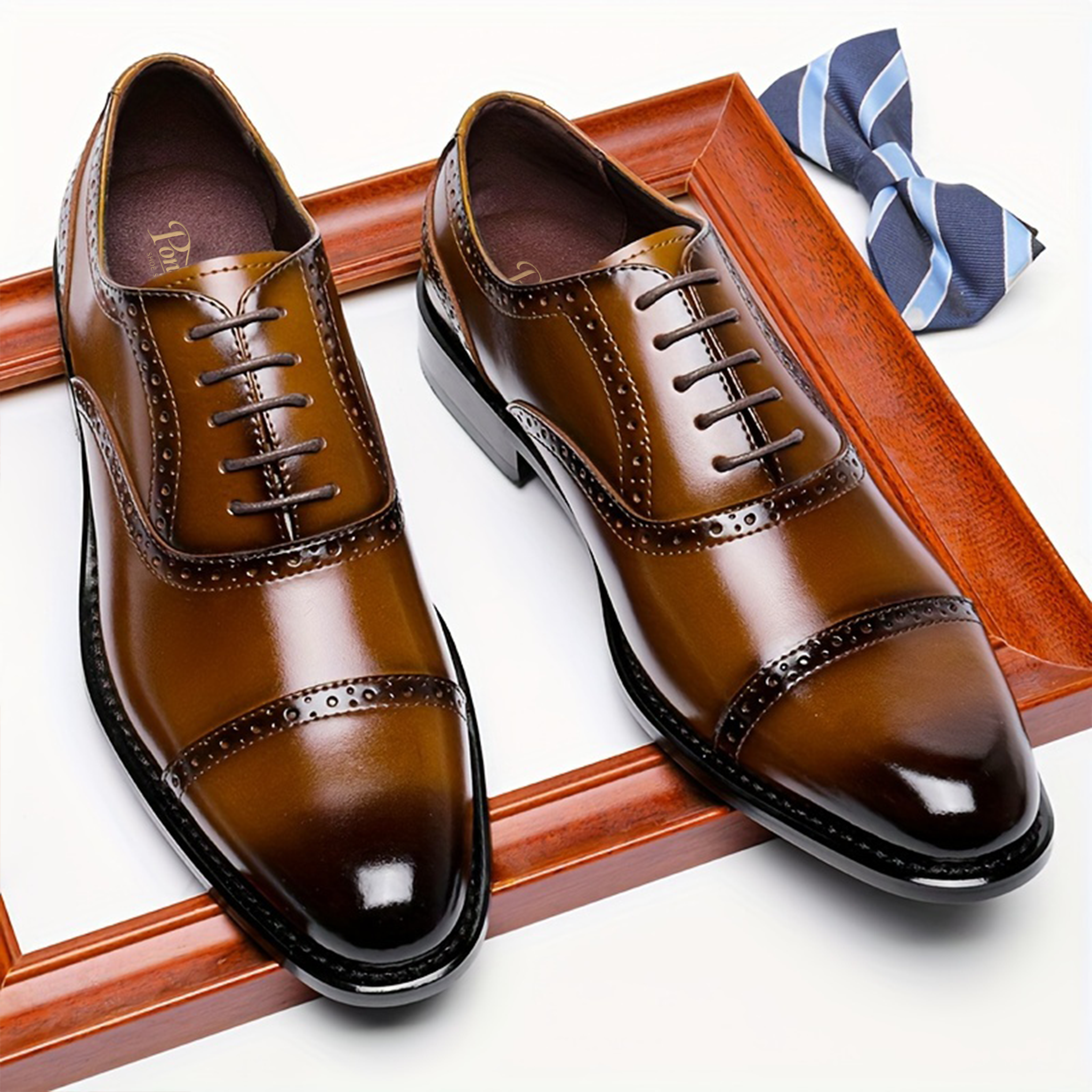 The Ponytail Shoe Shine Parlor Men’s Leather Brogue Derby Business Dress Shoes combine classic British-inspired elegance with modern comfort. Featuring refined brogue carving details and a traditional Derby silhouette, these shoes are designed for men who want a sophisticated yet versatile style for business and formal occasions.