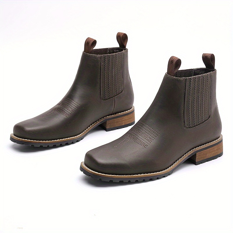 These boots feature a square toe shape, which is a signature element of western-inspired footwear. The slip-on closure makes them easy to wear and remove, while the short boot height gives them a versatile ankle boot silhouette suitable for everyday styling.