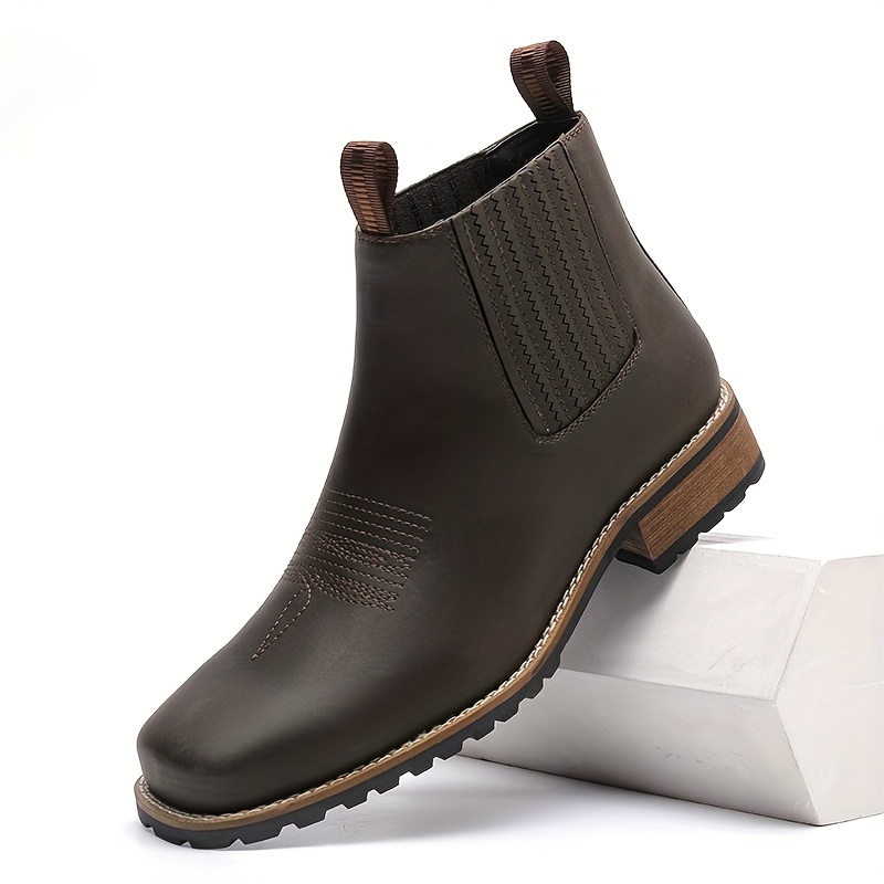 The Ponytail Shoe Shine Parlor Men’s Western Cowboy Square Toe Casual Boots combine classic western style with modern comfort. Inspired by traditional cowboy boots, these ankle boots feature a retro design that adds character to casual outfits while remaining practical for everyday wear.
